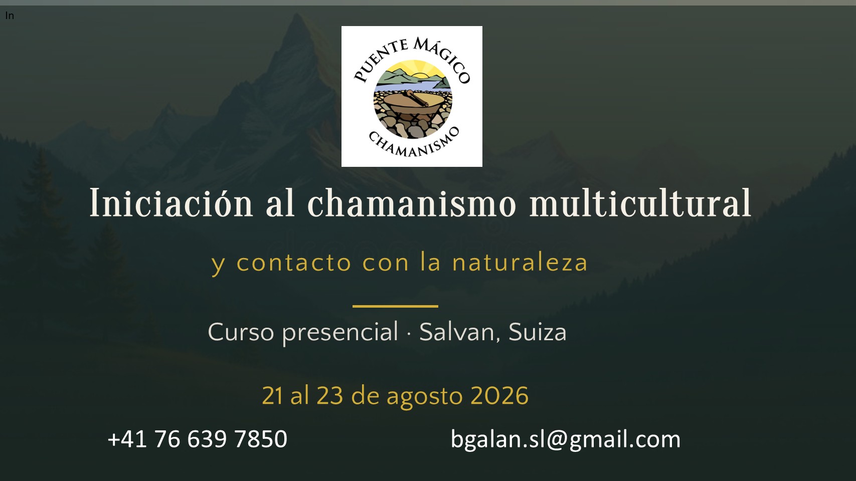 Curso «Iniciación al chamanismo multicultural». Salvan, Suiza. 21 al 23 agosto 2026