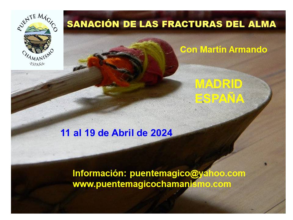 Sesiones individuales de sanación de las fracturas del alma en Madrid, España, con Martín Armando, del 11 al 18 de abril de 2024. Informes por mail a puentemagico@yahoo.com