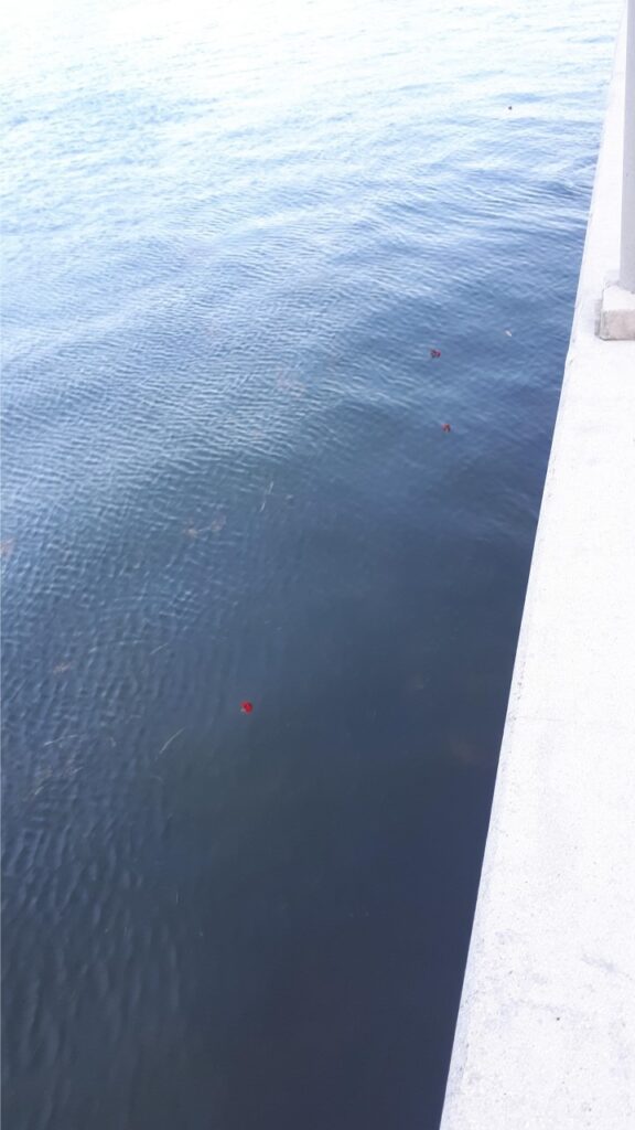 Antes de salir de la bahía de Brickell los espíritus psicopompos me mostraron una imagen muy fuerte: tanto Santiago y yo debíamos tirar flores rojas en la bahía. No sé, como algo que mostrara compasión por ellos, el final de ese sufrimiento para ellos. Le comenté esto a Santiago al final del trabajo. Él me contó que vio cosas muy parecidas a las que vi yo y me dijo que en un momento se sintió en peligro. Más allá de eso, todo estuvo bien.