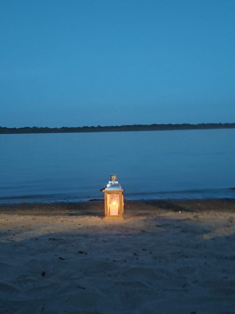 Le avisé a todos los participantes de que debían invocar al espíritu del río, además de a otros espíritus ayudadores, para que nos asistieran con el trabajo. Además coloqué un candelabro con una vela blanca encendida entre el río y nosotros para que permitiera formar el tubo de luz entre esa luz y la luz del Mundo de los Muertos de Arriba.