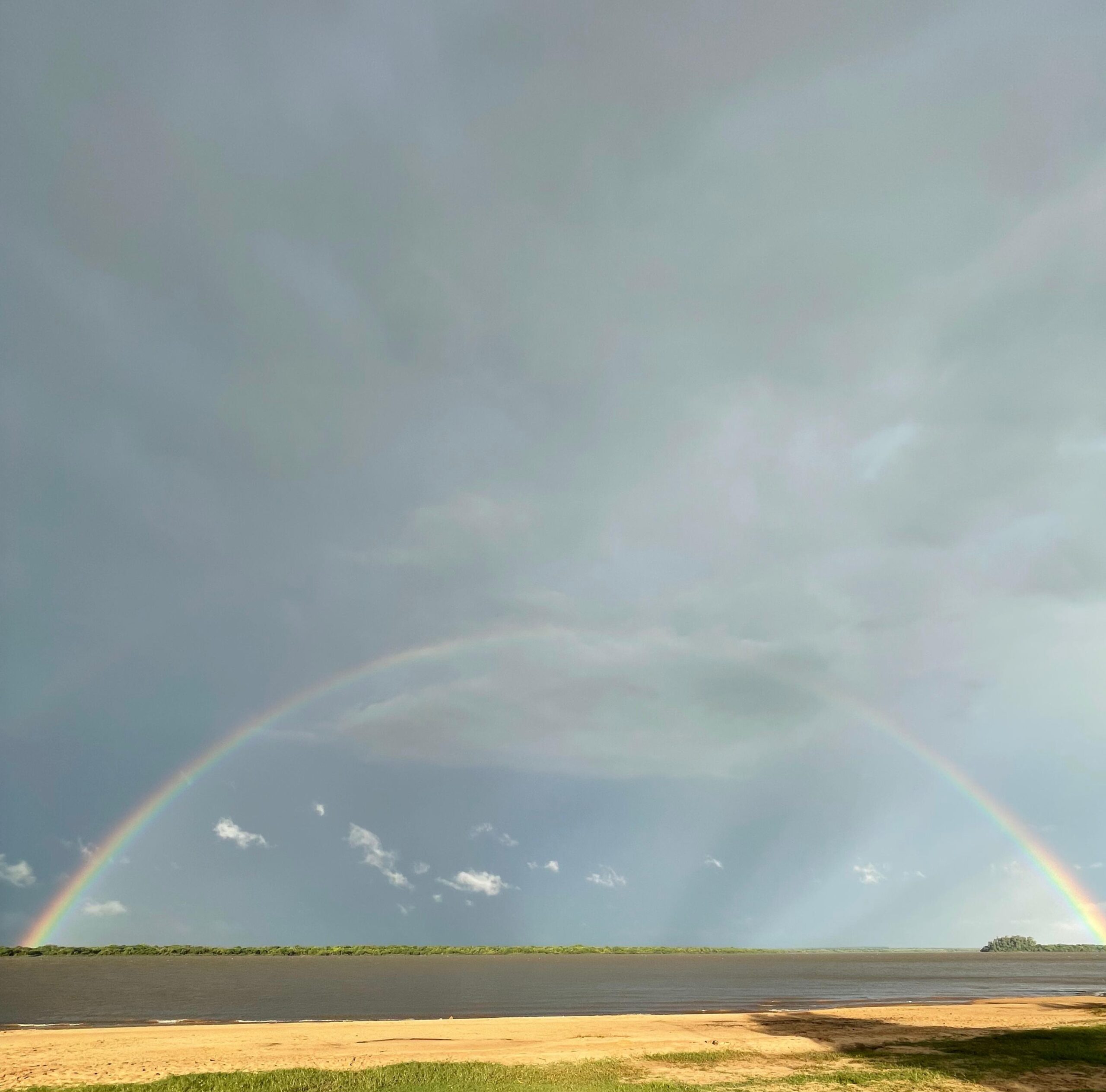 Al finalizar el curso, antes del mediodía nos acercamos al río y todos sentimos que el lugar estaba más limpio. Unas horas después un gran arco iris apareció del otro lado del río y, quizás, mostró un agradecimiento de los espíritus por el trabajo realizado.