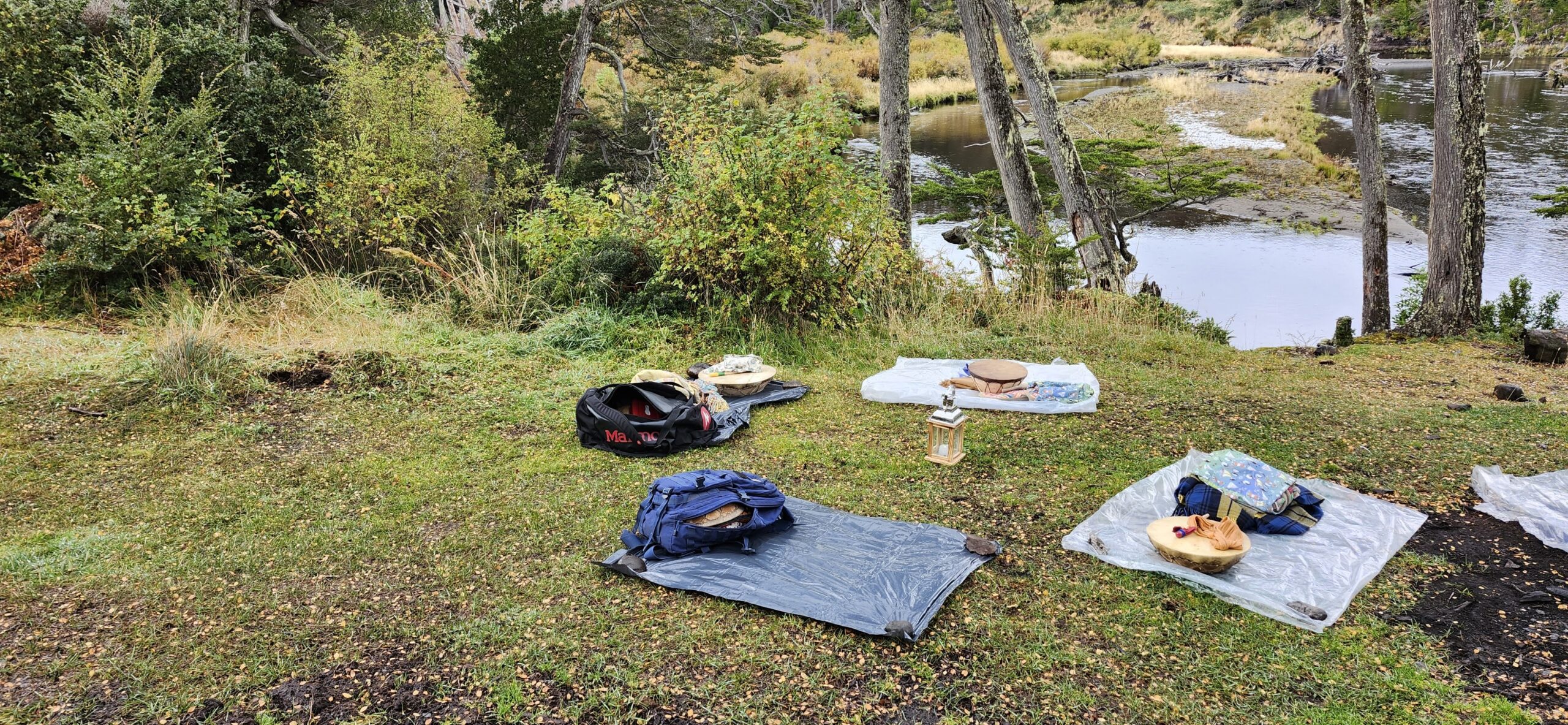 Yo tenía pasaje para ir a Ushuaia para mayo, para ir a dictar un curso chamánico. Ese viaje estaba organizado desde hacía muchos meses antes, por lo cual comencé a organizar el psicopompo con los Haush para mayo. Santiago me acompañaba a ese viaje. En Ushuaia, además de Ricardo y su camioneta, se sumó La Sabri, una alumna avanzada de allí que había participado en todos los psicopompos con los Yámanas y los Selknan antes de la pandemia de 2020. Se organizó también que a distancia participarían muchos más, pero había que ir presencialmente al lugar y hacer sonar los tambores chamánicos para que estas almas pudieran encontrar el camino a la luz.