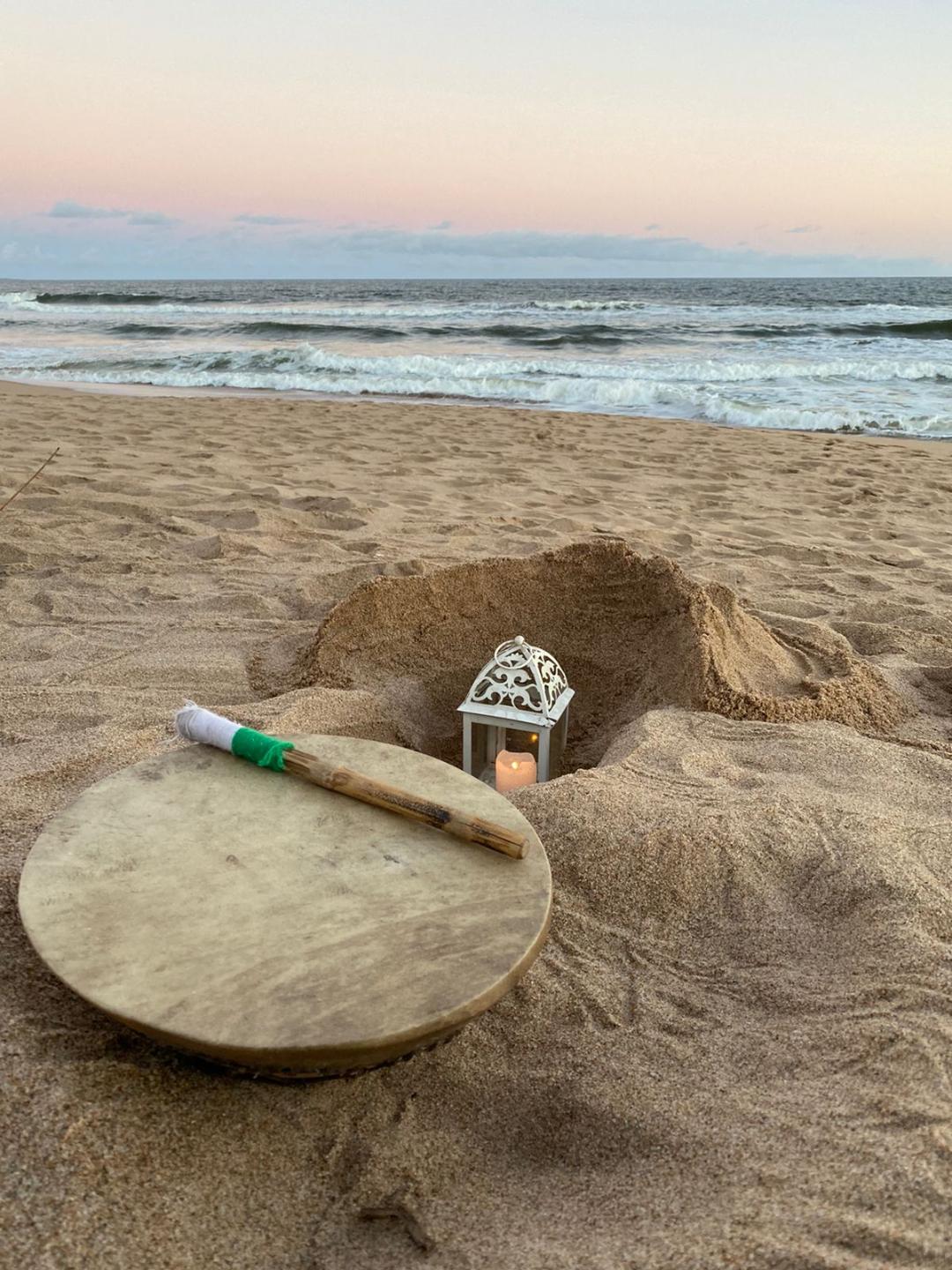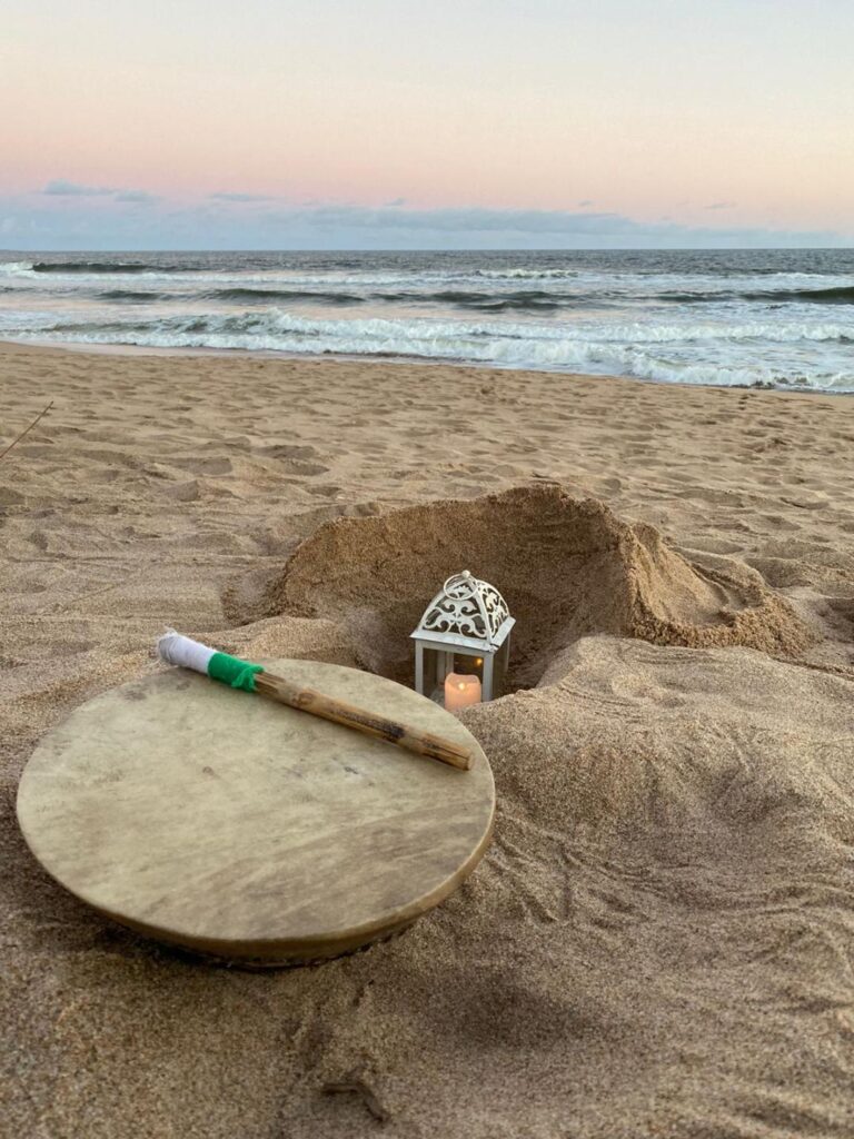 Llegamos a las tierras uruguayas el jueves 14 de abril y nos hospedamos en la casa de una paciente mía de Buenos Aires, que por un precio súper cómodo, nos alquiló por cuatro noches en Ocean Park. La casa esta a unos 200 metros de la playa y desde allí se ve y escucha el mar. Apenas llegamos al lugar yo comencé a sentir que había algo extraño, una energía que tironeaba desde el norte. Entonces, esa misma tarde fuimos a la playa los cuatro y decidimos averiguar a través de un viaje chamánico si había que hacer un psicopompo en el lugar y quiénes eran, si eran aborígenes atrapados. A las cuatro personas que averiguamos nos dijeron que eran aborígenes de la zona y que estaban hacia el norte, alejados de la zona en la que estábamos pero que había que llamarlos para que se acercaran, y que además eran muchos y estaban muy enojados. A los cuatro nos dijeron, además, que el psicopompo debía hacerse el viernes a la tarde noche, como a eso de las 19 horas cuando el sol estuviera cayendo y la luna estuviera saliendo. Así lo organizamos.